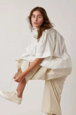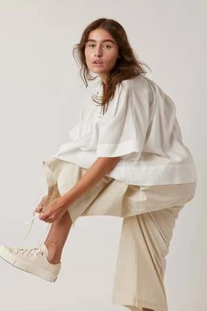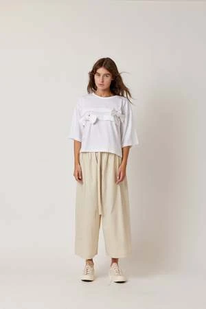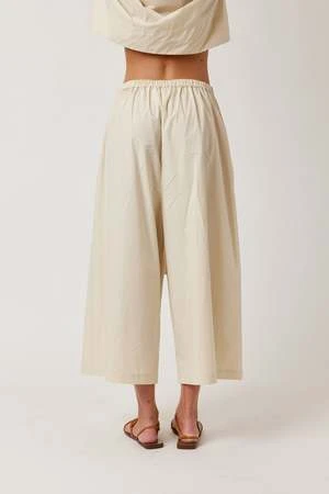 amente cropped cotton pants are cropped, wide-leg silhouette that gains structure from the compact weave of 100% cotton. There is a rubber band at the back of the waistband, so it is comfortable to wear.