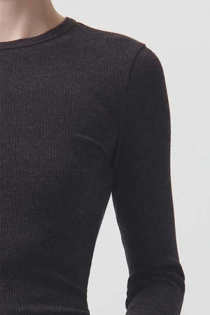Agolde Delphi is a cozy, ultra-soft slim ribbed long sleeve in Pasha washed charcoal grey. Crafted in a breathable cotton blend with a hint a stretch for all-day wearability.