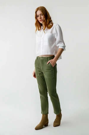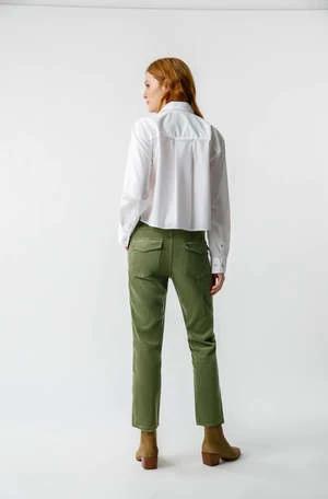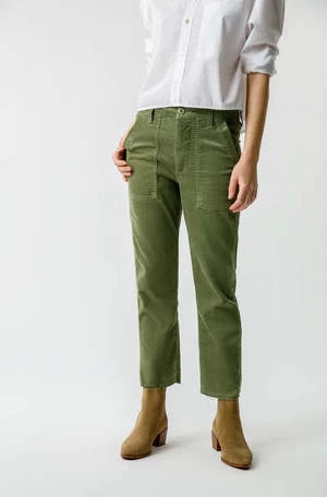 The corduroy version of our cult classic, Easy Army Trouser, features a relaxed, slightly dropped crotch and crop straight leg with trouser styling. It also includes back and front army patch-style pockets. Easy to wear and effortless to style. Zip fly.