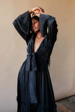 Luxurious silk dress, gorgeous colorfully patterned, one size fits most. Adjustable drawstring waist, 3/4 sleeve, loose fitting, enclosed seams, hidden back zipper. 100% Silk. Can be worn loose or fitted.