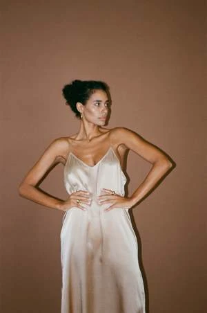 Model wears size XS/S In nude silk