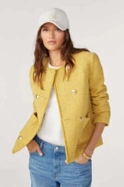 Our JOE jacket is a real beauty. Chic, elegant, and sublime, it is designed with long sleeves, a round neckline, and golden buttons in front that catch the light. JOE is also adorned with braided strips along the button tab and neckline. Finally, a jacket that brings out the elegance in any look! We love the handy patch pockets on the front. Pair this jacket with a fitted skirt or some high-rise jeans.