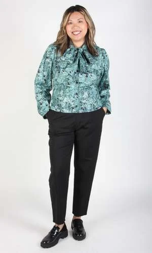 Bosn Bird is a button-front cotton blouse with a wide tie at the neck for a vintage vibe! It has a gently gathered sleeve head and is cut to a length that works worn both inside and outside of a pant or skirt.