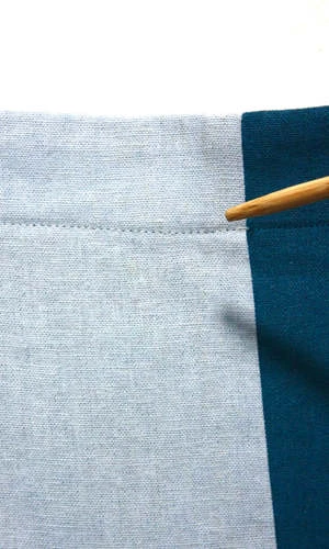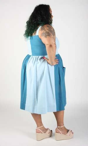 This colour-blocked, tiered shift dress is made of a soft linen/rayon blend. It slips on over the head, and has large patch pockets on the front.