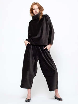 The Wide Pant by Black Crane is super soft, slightly oversized and features a relaxed fit, elastic waistband, creased box pleats (front and back), and a drop crotch.