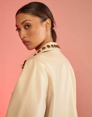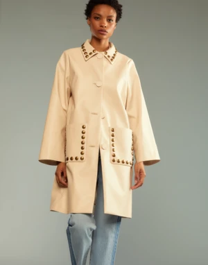 Cream vegan leather studded coat.