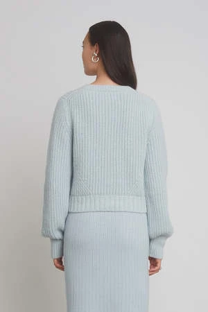 The Becca cardi was created for the cardigan-lovers who covet our stable Sara Cardi, but, desire a slimer fit and a crew-neck. Designed with a feminine blouson-sleeve, a cropped body-proportion, and italian-button closure, wear this piece solo back to your favorite high-waisted pants or as an open-topper, making you feel both elegant, yet relaxed. The classic fisherman rib-stitch in super-soft alpaca yarn conveys an effortless and transitional sensibility.