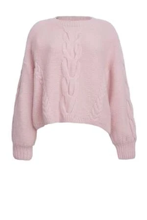 Vaida is a relaxed, airy, sweater with a feminine-blouson sleeve, hand-knit with the softest air-spun alpaca-yarn with sumptuous, horse-shoe cables at center-front and sleeve and lofty jersey stitch on the body and sleeves. Vaida looks chunky, but is extremely lofty. This piece is perfect to style in a relaxed or polished way, whatever your mood.
