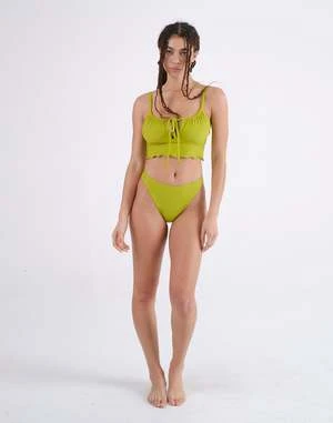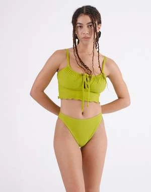 The Selena Crop Top is as versatile as she is comfortable. She features rouched detailing at the neckline with shoulder straps that tie at a peekaboo front. With a supportive long-line cut complemented by a delicate pearl hem, this piece goes great at the beach or as a sportswear separate alike.