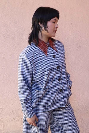 A comfy shirt-jacket Made from 100% deadstock 8oz twill with contrast collar, cut and sewn in SF with a cozy, oversized fit.