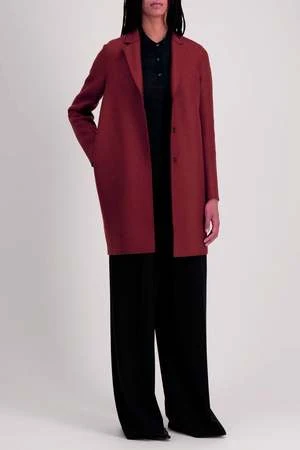 Harris Wharf Cocoon Coat Pressed Wool in Cognac. Mid-length cocoon coat cut in virgin wool. The coat is a signature design featuring notched lapels,single breasted stud button fastening,and side pockets. The coat is an amazing piece to have for a life time. The cut is simplistic and stylish, perfect with with any outfit.