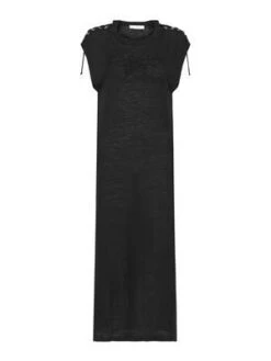 The IRO Iboga Dress in Black is easy to wear and will seamlessly merge into any wardrobe. Constructed from a soft and lightweight stretch linen, this maxi style dress features lace up shoulders with eyelet details and cap sleeves. Team this pullover piece with your favourite leather slides and you’ll have the perfect off duty look ready to go.