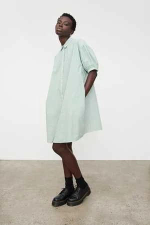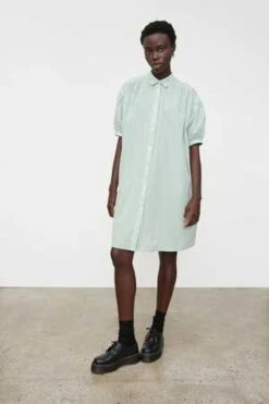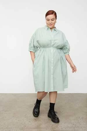 Made from 100% certified Fairtrade woven organic cotton seersucker, the Smock Dress has a relaxed fit and on the knee length. It features gathers across the shoulders which drop into short gathered sleeves. Can be worn loose or cinched at the waist with the provided tie belt. Side seam pockets add to the ease of wear.