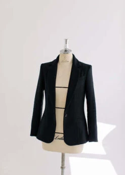 Let’s talk timeless. A modern take on a classic tailored style, this wool blazer is a go-to for casual-chic. Features slim lapels, welt pockets, waterfall buttons, inside pocket and a single button closure.