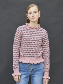 – Has lovely mock neck collar and sleeve hem frill detail.
