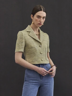 – CROPPED JACKET MADE WITH UNIQUE LINEN TWEED FABRIC.