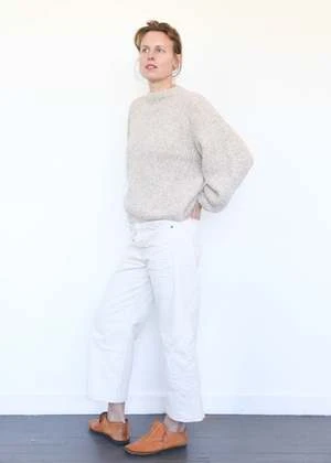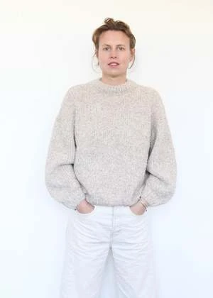 Highly textural sweater knit from Alpaca boucle yarn in mixed colors. Sweater features rounded rib neckline, shaped sleeve and relaxed fit.
