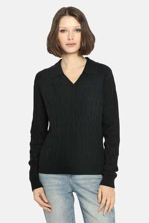 – Upgrade your fall wardrobe with our chic Cable Collared Pullover
