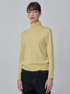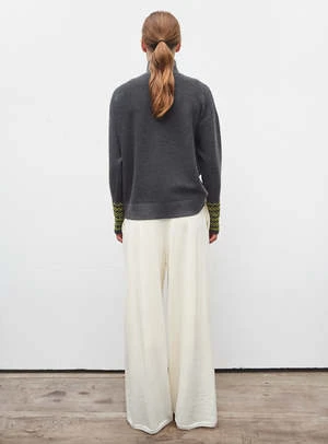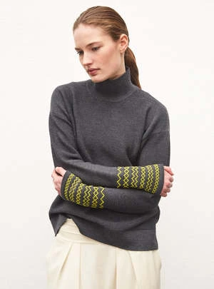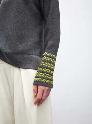 Long-sleeved pullover with high beck. Set-in sleeves. Contrast smocking stitch at cuffs