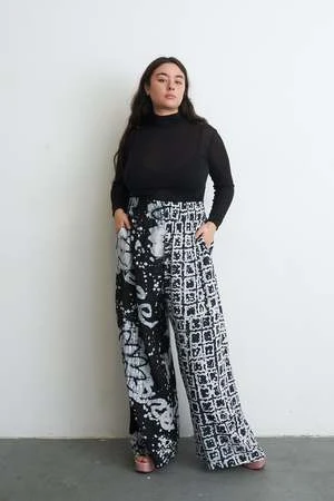 100% hand dyed ECOVERO LENZING more sustainably sourced rayon. The pants are a wider leg, wide elastic waist trouser with pockets! Super comfy! Super fun! Super cool.