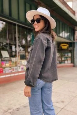 cute and cropped with two breast pockets! The perfect little denim jacket to dress up or down, wear solo or layered… this is a wardrobe staple!