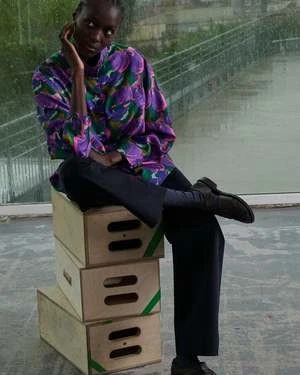 SOEUR Violin Blouse in Multicolor Rose Print.
