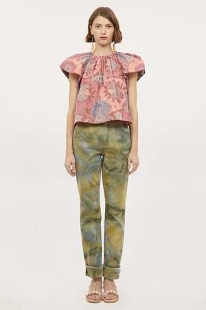 The Ulla Johnson Flo Top in Passion Flower is cut from a structured polyester fabrication that details a pink and blue paisley print. With a crewneck neckline and keyhole back closer, this puff sleeve top can be dressed up or dressed down. Simple in structure, vivid in color and print, this balloon sleeved top begs to be worn again and again.