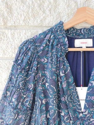 The Xirena Kara Dress in Indigo Flora presents a V-neckline and voluminous puffed sleeves, perfect to flatter the wearer with a cinched elastic waistband. Lightweight in feel, this eye-catching design is guaranteed to make a sophisticated statement.